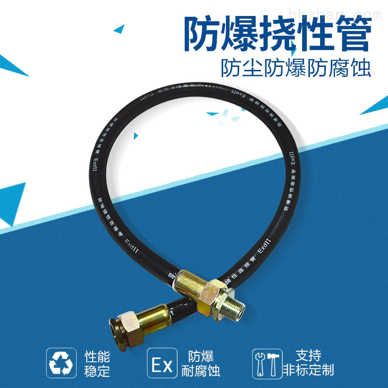 防爆撓性管具有耐燃、耐油、耐腐蝕、耐水、耐磨、耐老化、撓性良好、結構牢固、工作可靠等優點,廣泛適用于爆炸性混合物場所,作為防爆電器設備在電線敷設管路上,作為具有振動或彎曲設備的連接線配管之用,作為防爆電器設備的進出線連接或鋼管布線彎曲難度較大的場所連接之用。防爆撓性管結構軟管兩端為金屬螺紋活接頭,管體部分由金屬軟管組成。