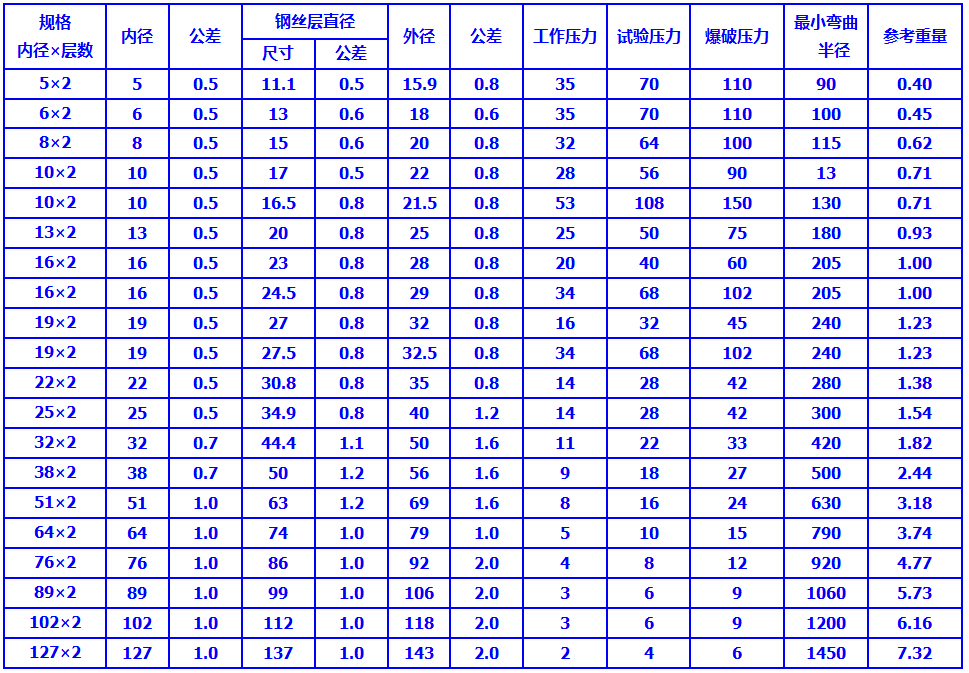 結構:膠管由內膠層,兩層鋼絲編織層和外膠層組成
