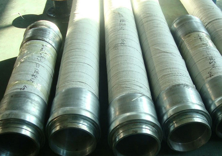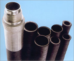 高壓鉆探膠管用途:適用于石油鉆探.泥漿輸送系統中鉆井立管頂部與可垂直運動的水龍頭之間作柔性連接的水龍帶.和適用于鉆井泵管線與立管之間用于調整安裝誤差.以便于連接和隔絕震動。適用于在高壓條件下大量輸送從旋轉式鉆探設備泵出且最低苯胺點位66°C的水基或油基泥漿。且能防硫化氫的侵蝕.油田井下作業輸送水.油.泥漿等高壓介質。結構:由內膠層或不銹鋼鎧裝內管.碳纖維增強層.中膠層.鋼絲增強層(鋼鏈線增強層).碳纖維外膠層組成。類型:產品分為鋼絲增強型.鋼鏈線增強型。