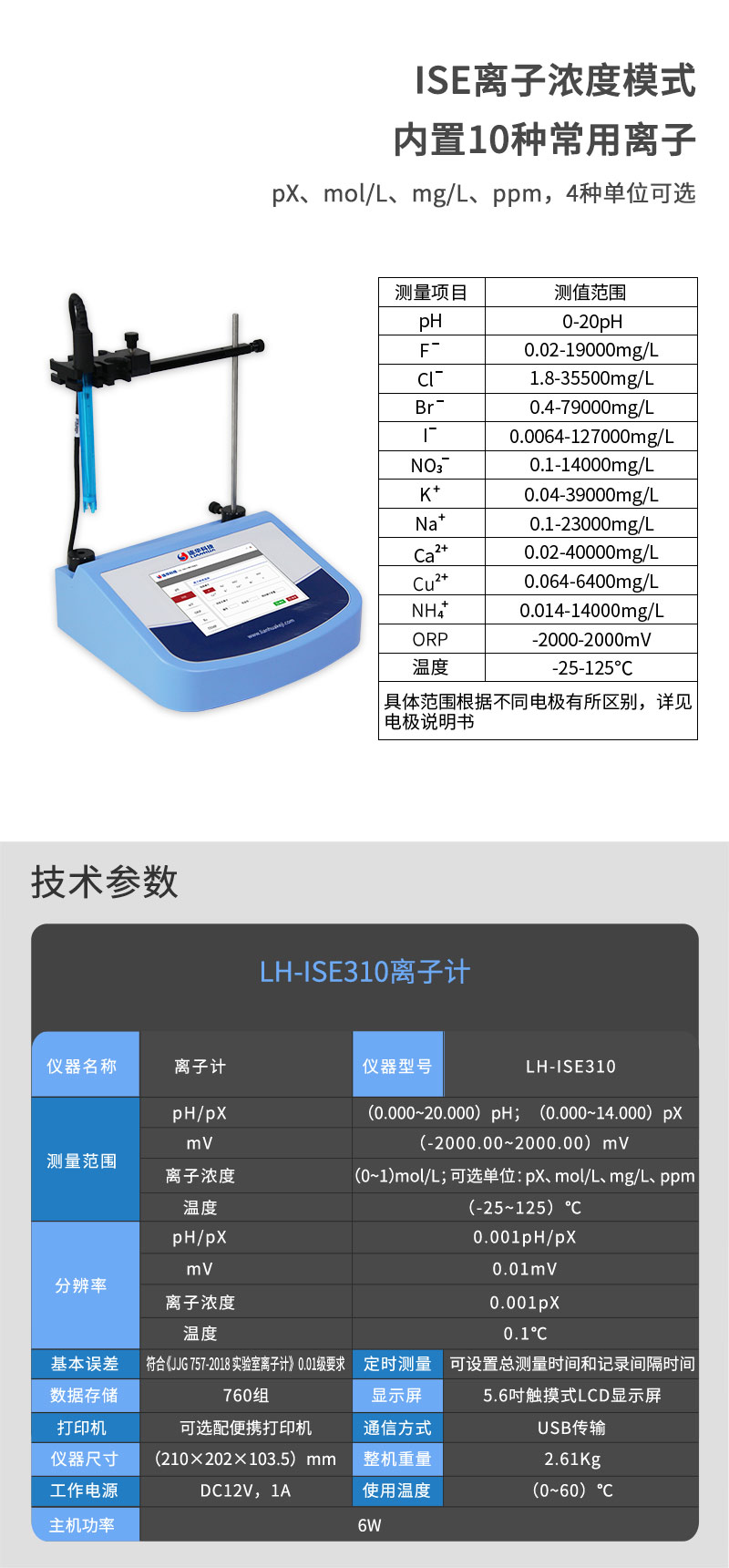 離子計LH-ISE310技術參數: